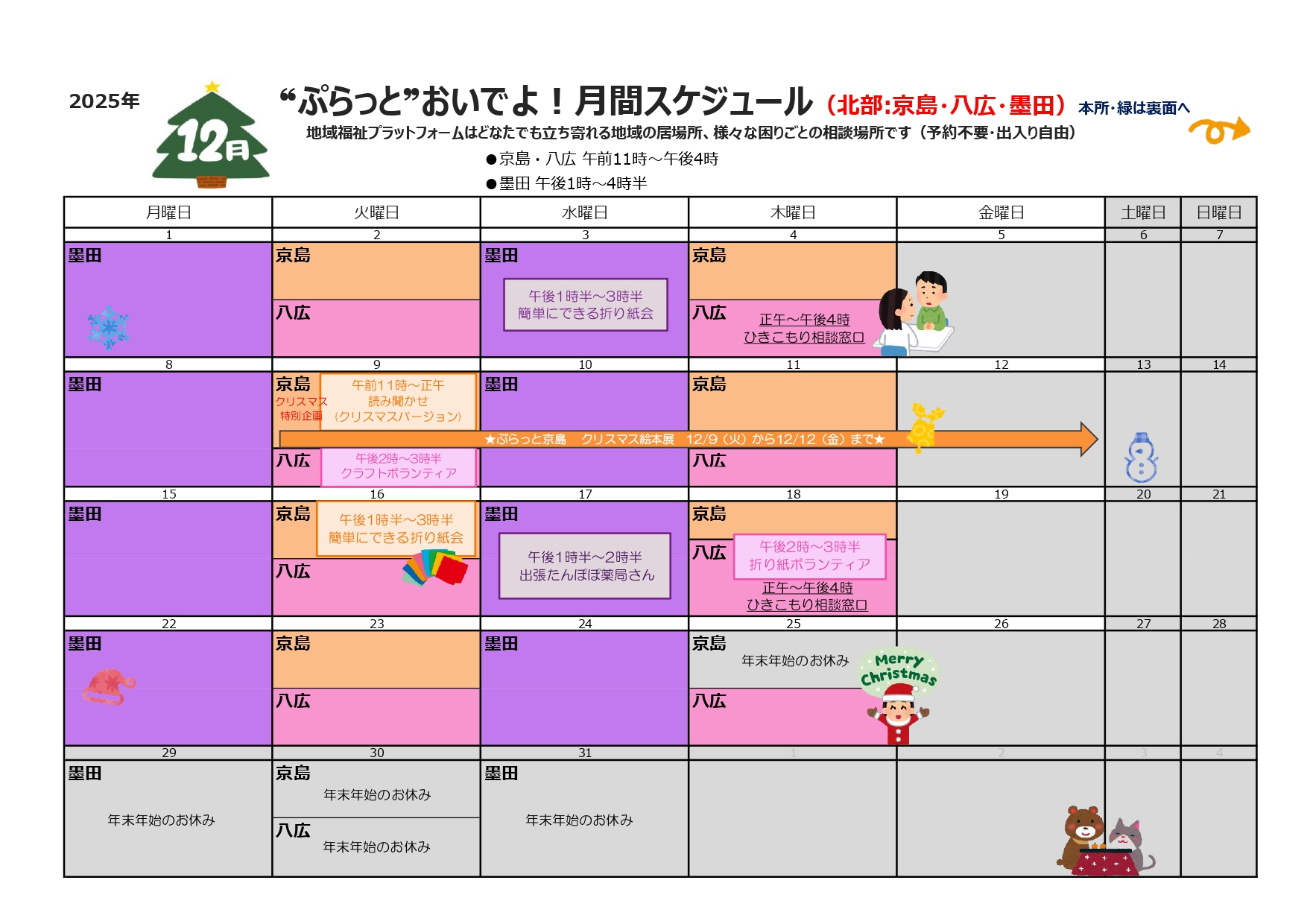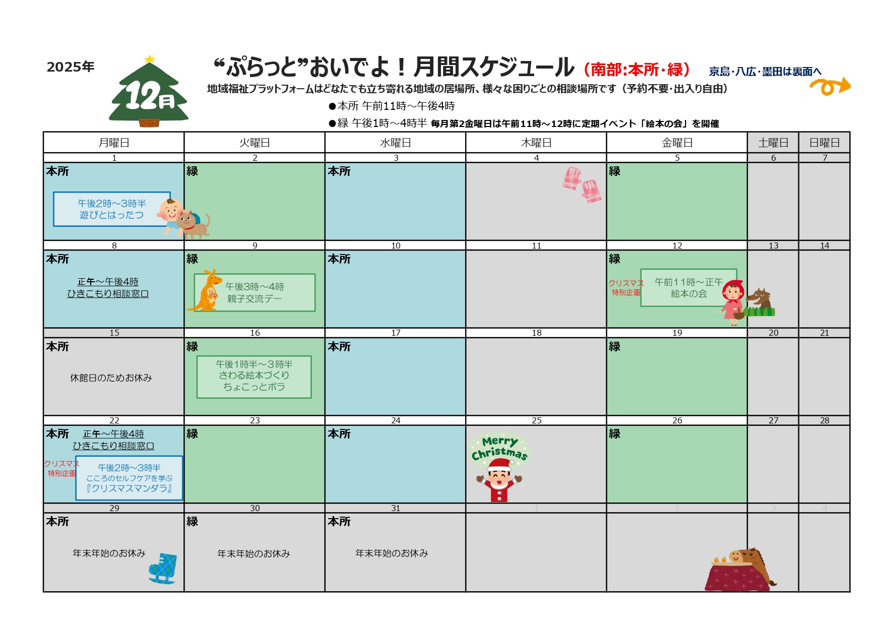 月間スケジュールを拡大したい場合はこちら ⇒ 12月のカレンダー