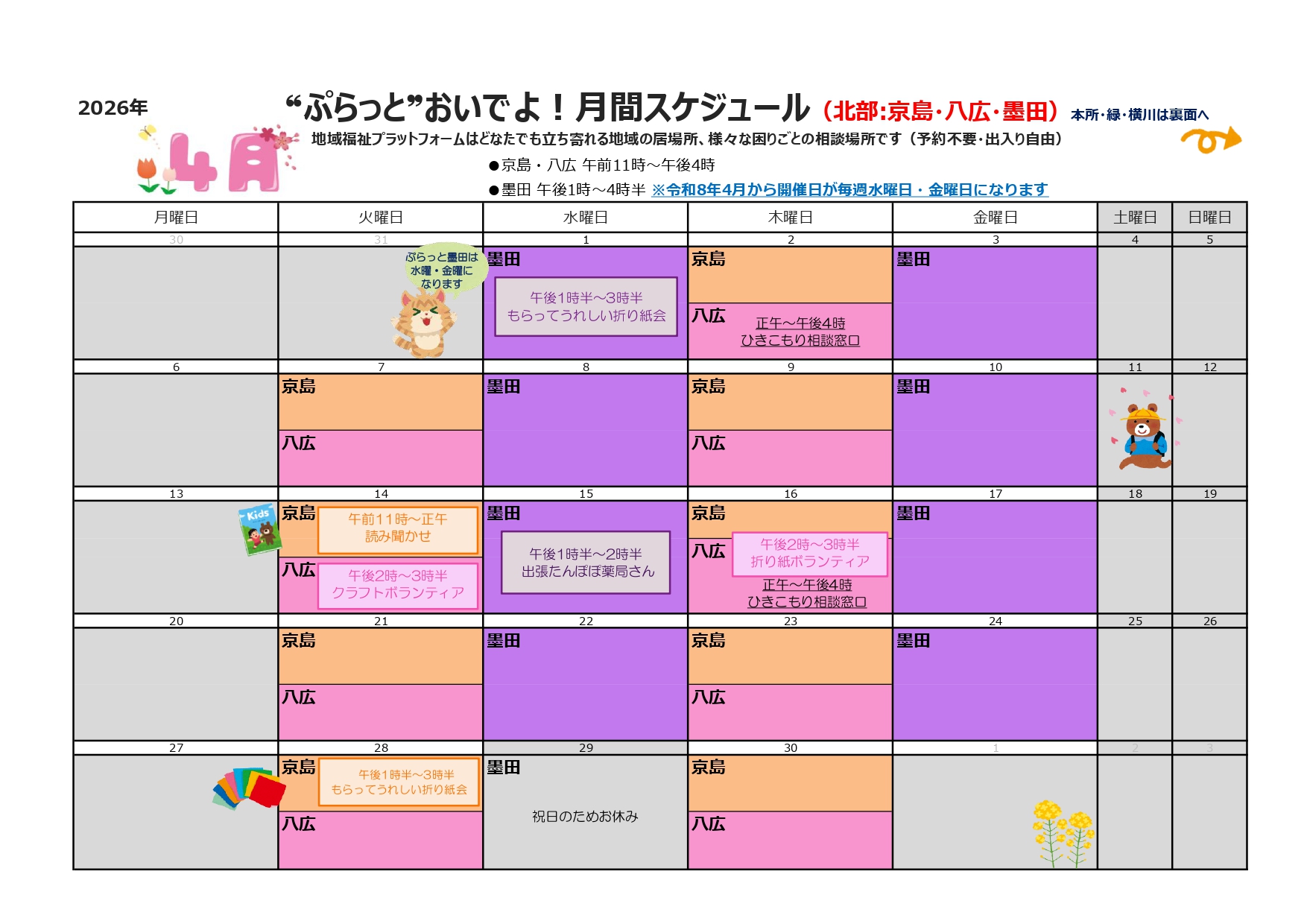 令和6年7月より、地域福祉プラットフォームの愛称が「ぷらっと」になりました。