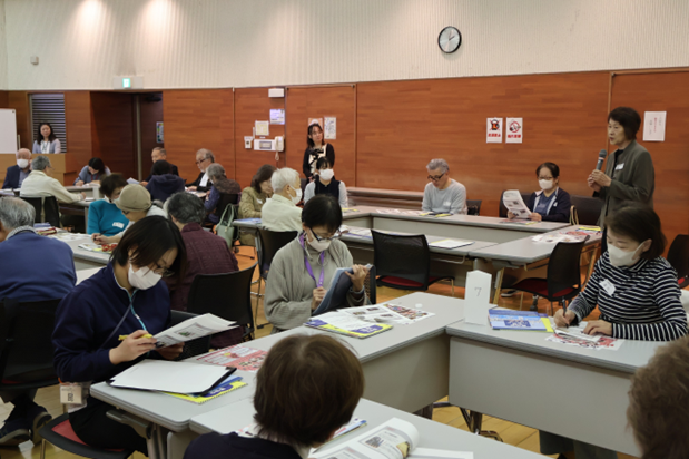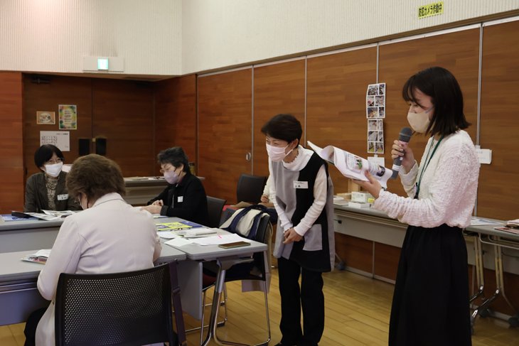グループワークでは、各団体ごとの活動について情報交換をしていただきました。その中で”訪問の対象者はどうしているか””マンションが多いがどのように活動しているか”など、具体的な情報交換もありました。参加された活動者からは、「見守りの仕方など工夫が色々あり、参考にしたいと思いました。」「難しさもありますが、自分たちも戸別訪問を始めてみたい。」との感想もありました。