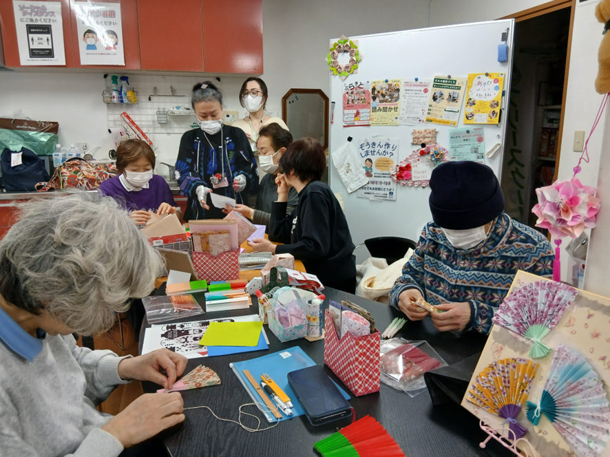 墨田区の委託を受け、墨田区社会福祉協議会が運営している「多世代交流と相談の場」ぷらっと京島(地域福祉プラットフォーム)にて、折り紙イベント「 扇子を作ろう 」を開催いたしました。